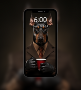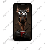 Meet Arthur, a distinguished Doberman with an air of sophistication. Sitting upright, his sleek, black and tan coat gleams under the gentle morning light. Arthur, with his attentive ears perked and piercing eyes, enjoys a cup of coffee beside him. The cup, elegantly positioned on a small table, adds a whimsical touch to his regal demeanor. His poised presence and the serene setting create a charming and unexpected scene, blending the grace of a noble canine with the everyday comfort of enjoying a warm cup of coffee. Arthur is the perfect Doberman drinking coffee wallpaper and home screen for both dog and coffee lovers!