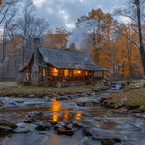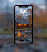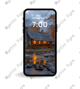 "A Quiet Place in the Woods" is a serene forest background from Mystic Fyre, perfect as a high-quality wallpaper or mobile screen saver. This captivating artwork portrays a warm, peaceful log cabin at dusk, bathed in the soft amber glow of its interior lights, exuding a welcoming and cozy atmosphere. Nestled among the trees, the cabin sits near a gentle stream, adding to the tranquility of the scene. "A Quiet Place in the Woods" beautifully captures the essence of a secluded, idyllic retreat in the heart of nature, making it an ideal choice for those seeking a serene and inspiring iPhone or Android home screen. Elevate your screen with this masterpiece from Mystic Fyre and experience the magic of a quiet woodland escape every day.